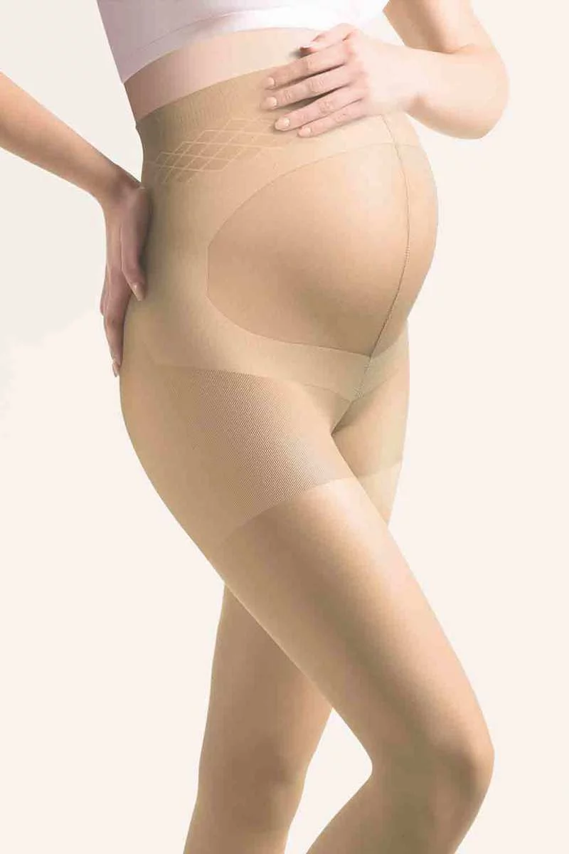 Mamma Umstandsstrumpfhosen in 20 Denier sind bequeme, hauchdünne Strumpfhosen für Schwangere, die während der Schwangerschaft nicht nur modisch aussehen, sondern auch bequem sein wollen. Diese Umstandsstrumpfhosen passen sich hervorragend den wachsenden Babybauch an, ohne ihn zu drücken, und betonen dezent dessen Form. Die klassischen dünnen Strumpfhosen für werdende Mütter von Gabriella!